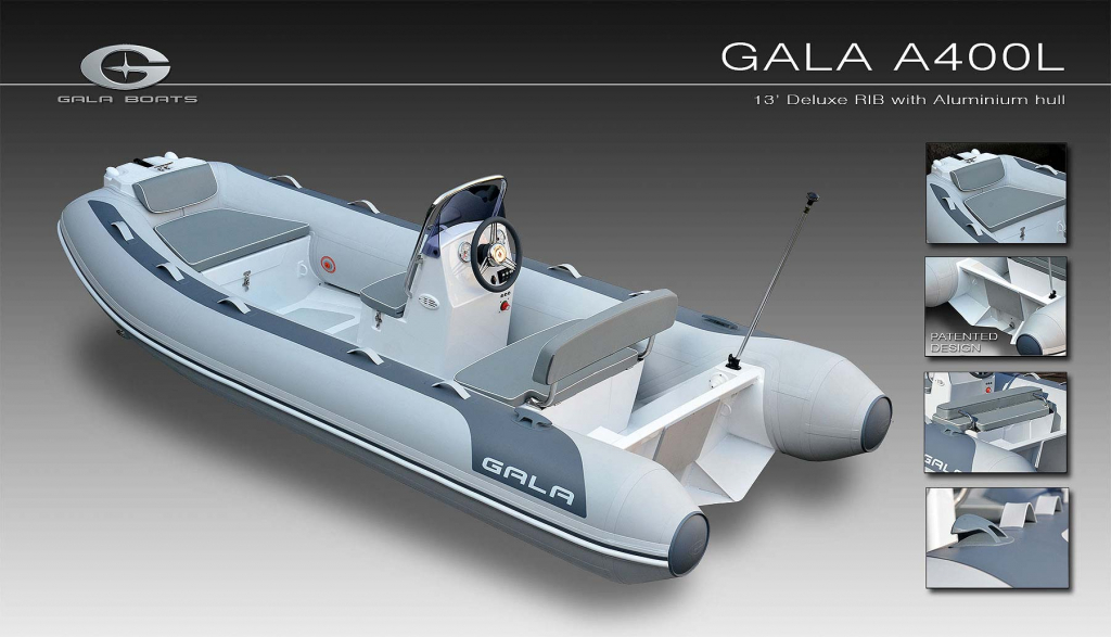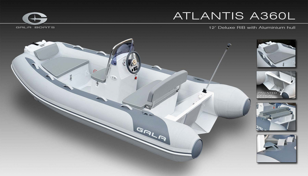 Medium-V, powder-coated aluminium hull with «GALA TABS», hidden reinforced transom brackets and keel protector